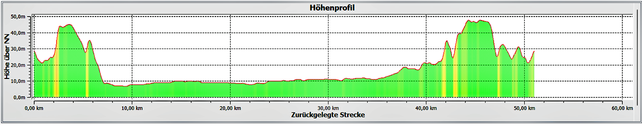 51,0 km | 21,8 km/h | 2:20 h Fahrzeit | 3:25 h Gesamtzeit | 112 m ↑↓