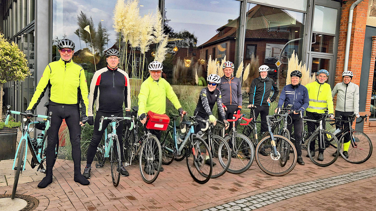 Heute am Start neun RRs und ein Gast: Franz hat seinen Enkel mitgebracht, der mit seinen 11 Jahren bereits erfolgreich Radrennen gemeistert hat. Es war richtig schön, mal so einen jungen Rennradfahrer dabei zu haben. Gerne immer mal wieder.