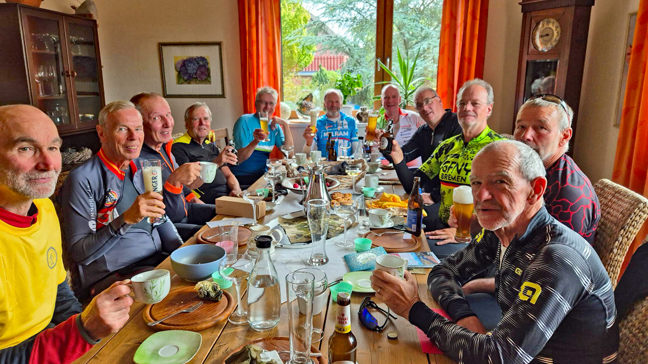 Heute sind 11 RRs am Start. Es gibt was zu feiern. Wir sind bei Heinrich eingeladen zum 70sten. Das Wetter will scheint's mitspielen. Trocken, Sonne-Wolken-Mix, wenig Wind.