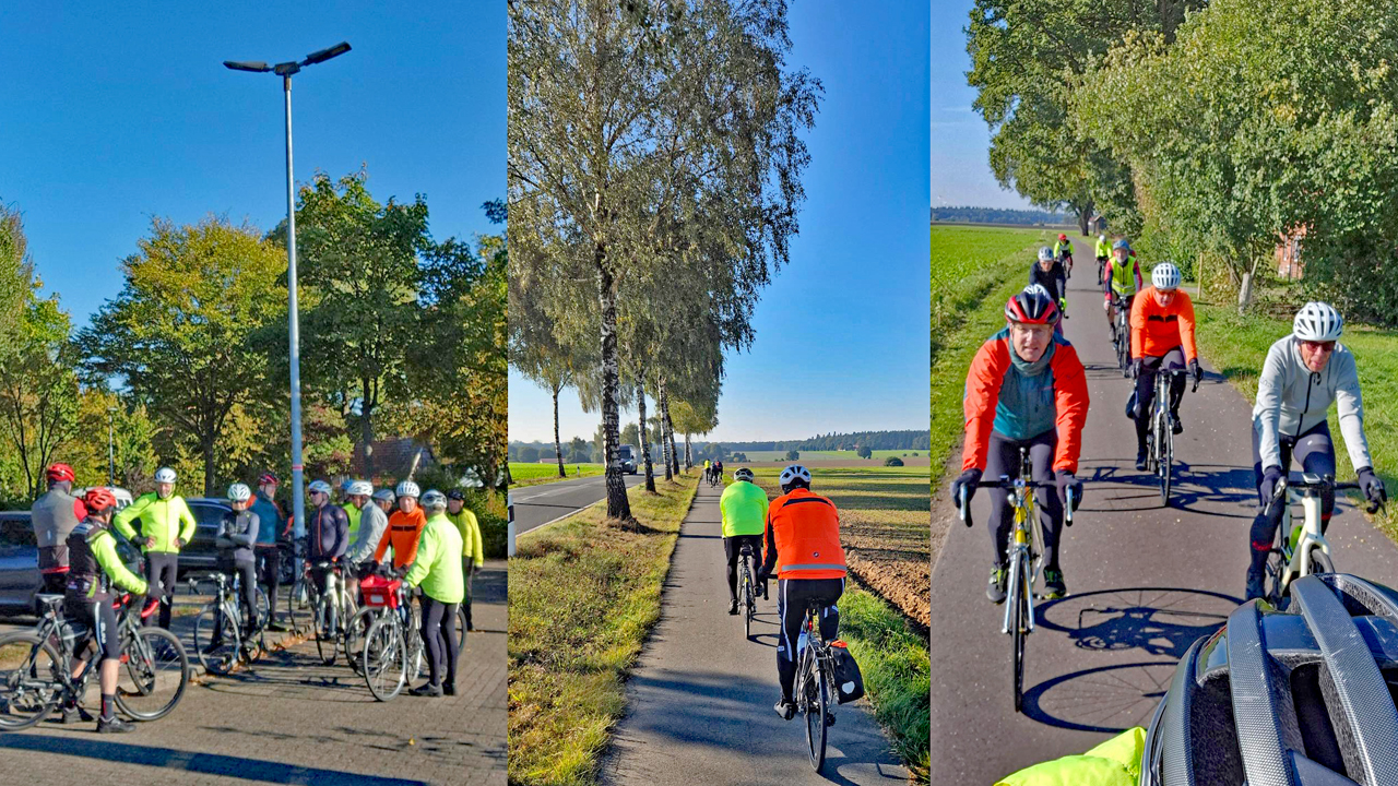 Kaum zu glauben, heute sind 13 RRs am Start erschienen. Das Wetter spielt mit: Viel Sonne, kaum Wind. Gegen die herbstlichen Temperaturen fahren wir uns warm.