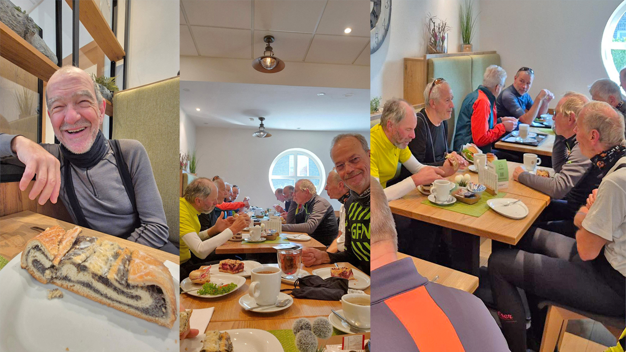 Bei Orlamünde belegen wir das halbe Café, werden aber doch zügig mit allen gewünschten süßen und salzigen Leckereien versorgt. Kaffee gibt's auch noch zum Schluss.
